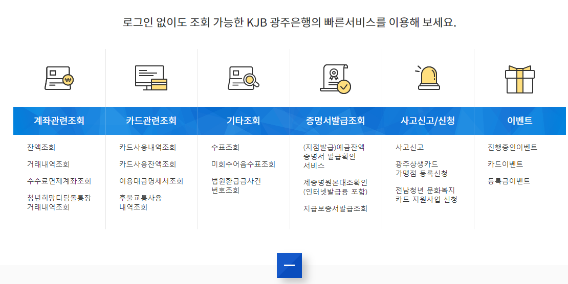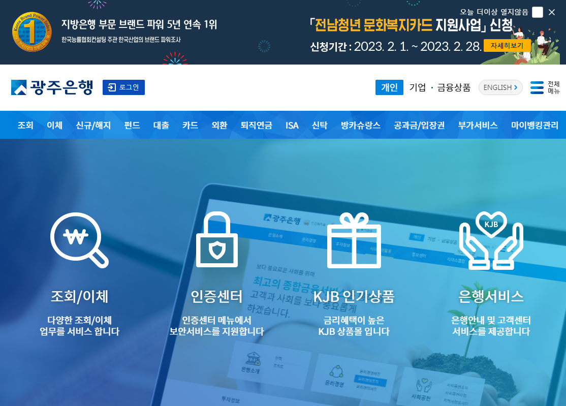 우리나라 최초 지방은행이자 현재 호남지역 대표 은행인 광주은행! 지역민들에게는 친숙한 이름이지만 사실 많은 분들이 어떤 상품이나 서비스를 제공하는지 잘 모르는 경우가 많은데요. 그래서 준비했습니다. 광주의 역사와 함께 성장해온 광주은행의 모든 것! 오늘은 광주은행 인터넷뱅킹에 관해 소개해드리겠습니다.