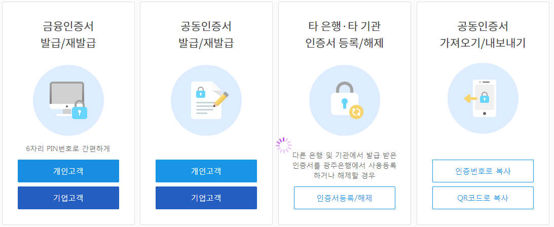 | 개인인터넷뱅킹 | 인증서가 필요한 모든 거래, 인터넷뱅킹, 온라인 주식거래, 온라인 신용카드 거래, 전자민원 서비스 등 ※ 해당 기관의 이용 가능 여부를 확인해주세요. |