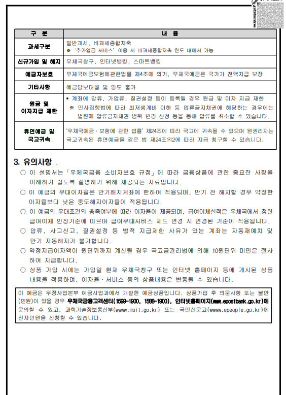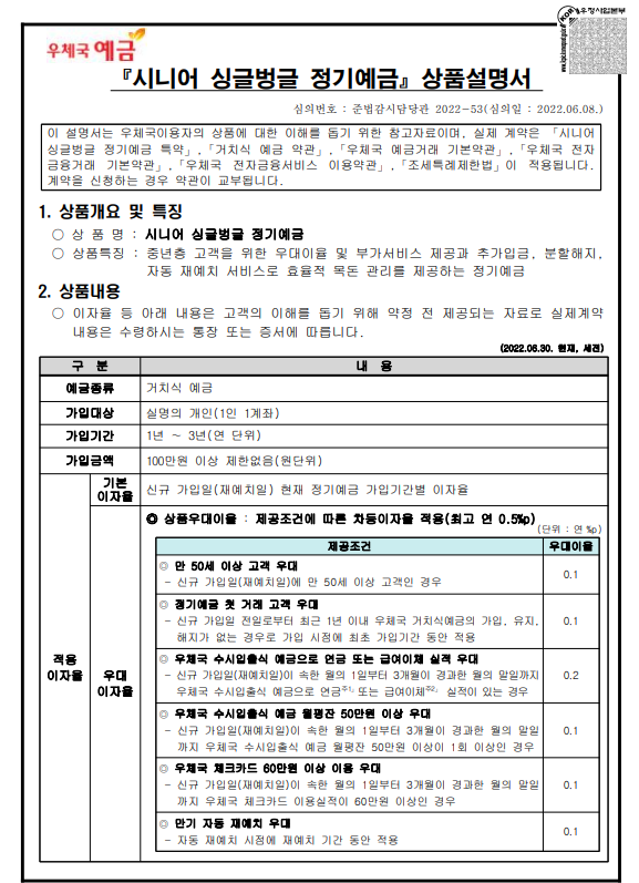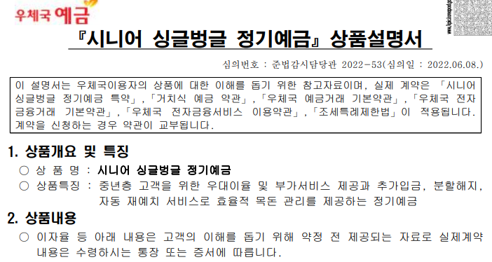 우체국 시니어싱글벙글 정기예금 상품설명서는 아래 링크 참고하세요