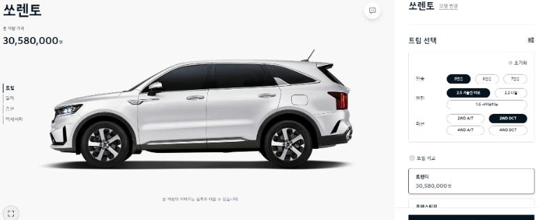 기아 쏘렌토는 여러 가지 트림을 제공하여, 각각은 필요에 맞는 다양한 기능과 옵션을 제공합니다. 도로 여행을 하든 오프로드 트레일을 탐험하든 기아 쏘렌토는 중형 SUV를 위한 훌륭한 선택이 될것입니다.