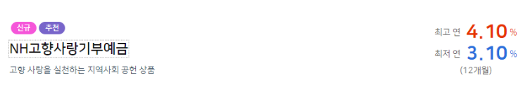정기예금 이율높은곳 농협 고향사랑기부예금