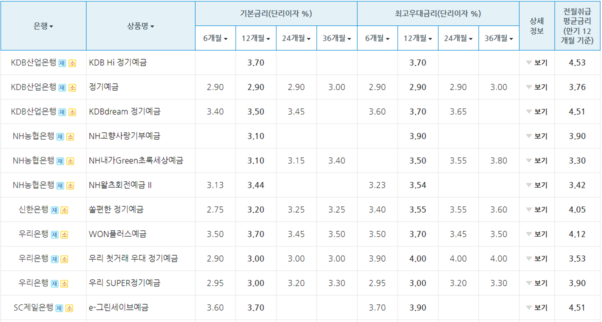 시중은행 정기예금 이율높은곳