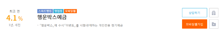 행운박스예금 상품 홈페이지